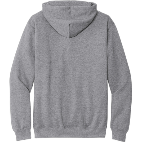 8.4-ounce, 80/20 ring spun cotton/poly Two-end ring spun cotton face fabric Two-piece dyed-to-match jersey fabric-lined hood Double-needle hem and topstitching on outside of hood seam 3/8-inch flat drawcords Dropped shoulder 1x1 rib knit with spandex cuffs and bottom band Tubular body Classic fit Tearaway label Select colors up to 5XL